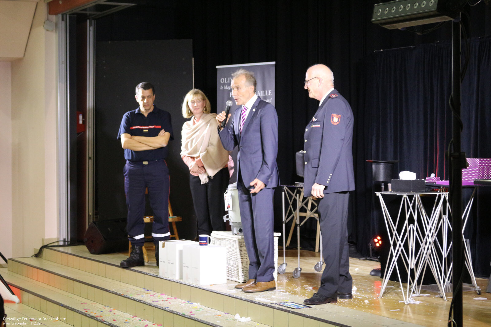 Anschließend wurde vom Freundeskreis Le Lude-Brackenheim zu einem durch eine Zaubershow des Duos Olivier & Passe Muraille begleiteten mehrgängigen Abendessen eingeladen. Im Anschluss daran würdigten in ihren Reden die Vertreter der Partnerschaft Jean Michel Housseau und Hans Müller die seit 1973 bestehende Freundschaft beider Wehren und wünschten sich das dies auch noch lange Zeit so fortbestehen würde. Als Zeichen der Freundschaft wurden dabei gegenseitig die Gastgeschenke übergeben.
