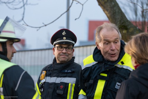Interessierte Beobachter der gelungenen Übung sind auch der Brackenheimer Bürgermeister Rolf Kieser und Böhringer-Geschäftsführerin Susanne Krueger, die dann auch die Feuerwehrmänner zu einer Stärkung einlädt.
