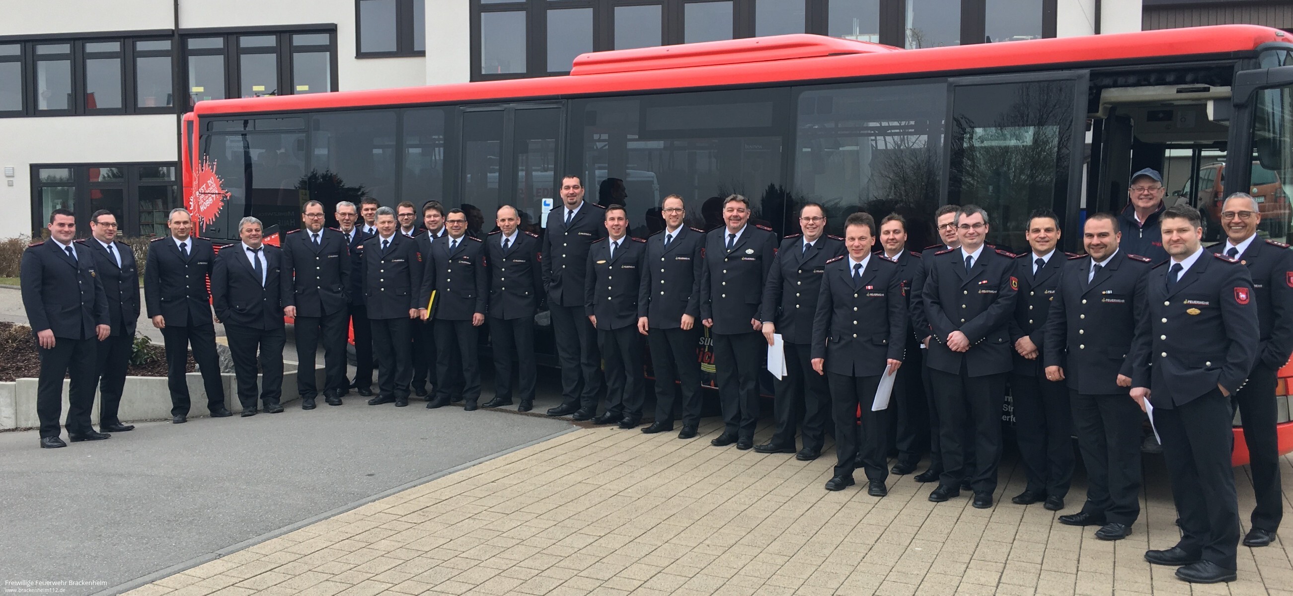 Ein "Feuerwehrbus" gefüllt von den Passagieren bis zum Fahrer mit Feuerwehrkameraden sieht man sicherlich auch nicht alle Tage.