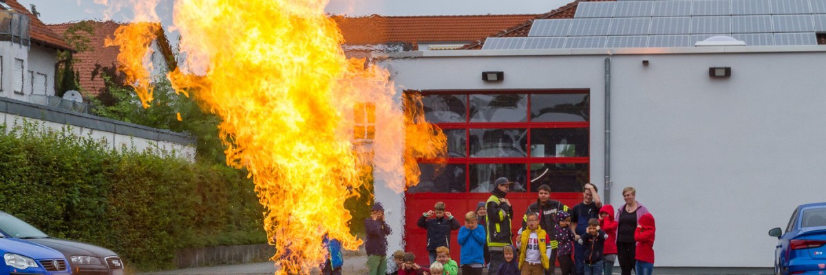 Am 09.09. hatten wieder insgesamt 31 Kinder- und Jugendliche die Möglichkeit einen Vor- bzw. Nachmittag bei der Feuerwehr zu erleben. Nach der Einteilung der Gruppen, welche traditionell mittels Süßigkeiten-Losen geschah, ging es zu einer der fünf Stationen. Das Magazin wurde besichtigt und natürlich auch die Autos angeschaut. Im Hof konnten verschiedenen Strahlrohre getestet und ein Ball mittels Wasserstrahl durch einen Hindernis-Parcours bewegt werden. Am Feuerlöschtrainer konnte jeder beweisen, wie gut er mit einem Feuerlöscher umgehen und ein Feuer bezwingen kann. Das Highlight für die Meisten war dann die Fahrt mit dem Feuerwehrauto. Natürlich aber auch hier immer mit Kindersitz.