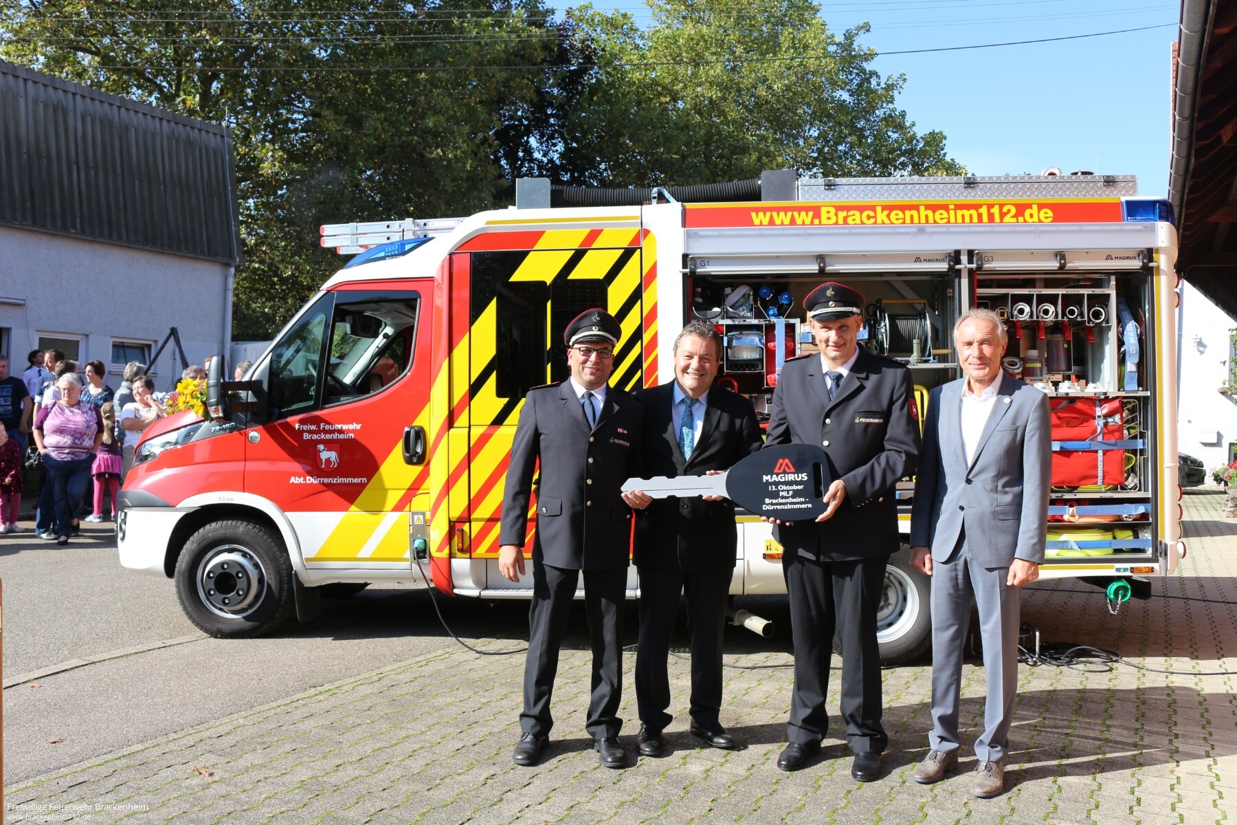 "Ich darf Sie heute recht herzlich zu einem großen Tag für die Abteilung Dürrenzimmern der Freiwilligen Feuerwehr Brackenheim begrüßen, zur offiziellen Übergabe eines neuen Löschfahrzeugs." So begrüßte der Dürrenzimmerner Abteilungskommandant Claus Baumann am vergangenen Sonntag sichtlich erfreut die Gäste. Diese haben sich zu diesem Ereignis zahlreich in der Fuchslochstraße eingefunden. Nach fast 37 Jahren ersetzt das Mittlere Löschfahrzeug ein Tragkraftspritzenfahrzeug aus dem Jahr 1982.