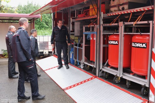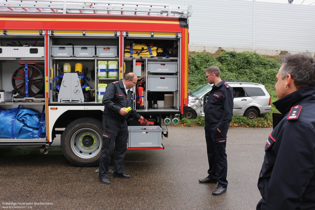 Als Einführung bei dieser ersten Fortbildungsveranstaltung wurde die Führungskonzeption auf Grundlage FwDV 100 zur Entlastung und Unterstützung des Einsatzleiters gewählt. Wie sieht die Einbindung des neuen ELW 2 bei den Führungsstufen A bis D aus? Was ändert sich mit der gerade in Ausarbeitung befindlichen AAO Überarbeitung? Welche Fachberater gibt es und was sind deren Beiträge zur Unterstützung der Einsatzleitung? Welche Sonderfahrzeuge, Abrollbehälter und Einheiten hält der Landkreis vor? Wie sieht die Zukunft mit dem im Ausbau befindlichen Abrollbehälterkonzept aus? Dies und mehr wurde aufgezeigt und die Teilnehmer konnten sich einen Teil der angesprochenen Sonderfahrzeuge und Abrollbehälter vor Ort anschauen.