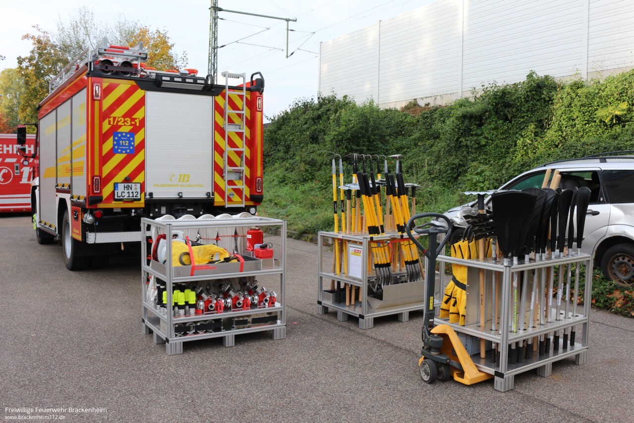Doch nicht nur "normale" Sondereinheiten werden im Landkreis vorgehalten. Für den Bevölkerungsschutz Baden-Württemberg stehen mehrere sogenannte Katastrophenschutzzüge zum Einsatz bereit. Besonders einer davon bekam diesen Sommer Aufmerksamkeit. Am 19. Juli wurde der "Katastropenschutzzug Hochwasser Heilbronn Land" im Verband mit weiteren Hochwasserzügen des Landes Baden-Württemberg ins Ahrtal verlegt. Anhand dieses Einsatzes wurde das Abrücken eines solchen Zuges von der Anforderung bis zum Auftrag im Einsatzgebiet aufgezeigt.
