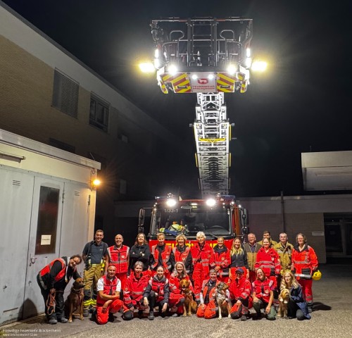 Rettungshunde fahren Drehleiter